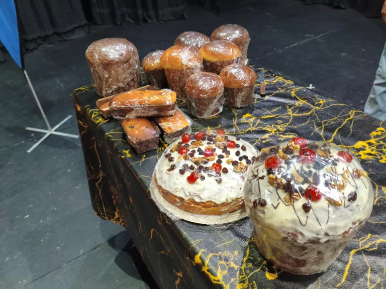 Durante la jornada se elaboraron distintas preparaciones típicas de las fiestas, entre ellas pernil a la olla, panes para acompañamiento, pan navideño y magdalenas, como parte de una propuesta orientada a la cocina festiva.