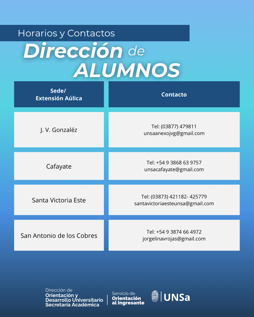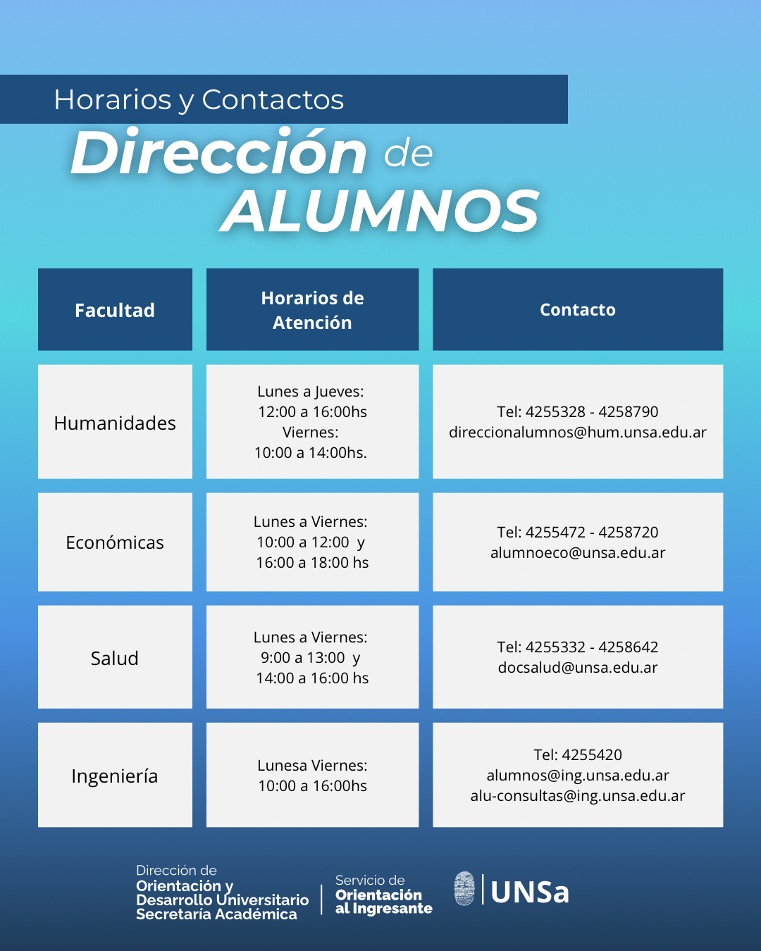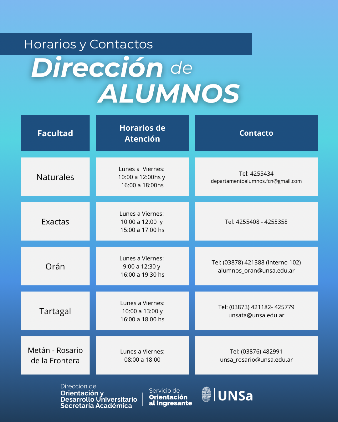 | Naturales | soeexactas.unsa@gmail.com |