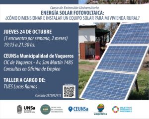 CEUNSa Municipalidad de Vaqueros - Curso de Extensión Universitaria Energía Solar Fotovoltaica: "¿Cómo dimensionar e instalar un equipo solar paraLeer mas »