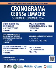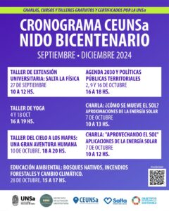 📌 CRONOGRAMA DE CURSOS, CHARLAS Y TALLERES CEUNSa BICENTENARIO | SEP - DIC 2024 Conocé la oferta de capacitaciones queLeer mas »