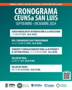 📌 CRONOGRAMA DE CURSOS, CHARLAS Y TALLERES CEUNSa SAN LUIS | SEP - DIC 2024 Conocé la oferta de capacitacionesLeer mas »