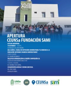 APERTURA DEL CENTRO DE EXTENSIÓN UNIVERSITARIA NRO. 48. CEUNSa FUNDACIÓN SAMI 🟢 El día viernes 14 de marzo se realizaráLeer mas »