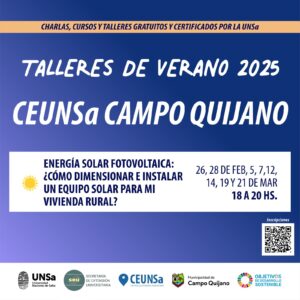 🟢 CEUNSa Municipalidad de Campo Quijano| Curso Taller de Extensión Universitaria: ENERGÍA SOLAR FOTOVOLTAICA. ¿Cómo dimensionar e instalar un equipoLeer mas »